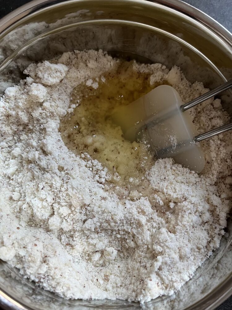 Ich habe auf das Rösten und Mahlen ganzer Mandeln verzichtet sowie auf das Hinzufügen eines Aprikosenkerns. Stattdessen verwende ich Bittermandelaroma.