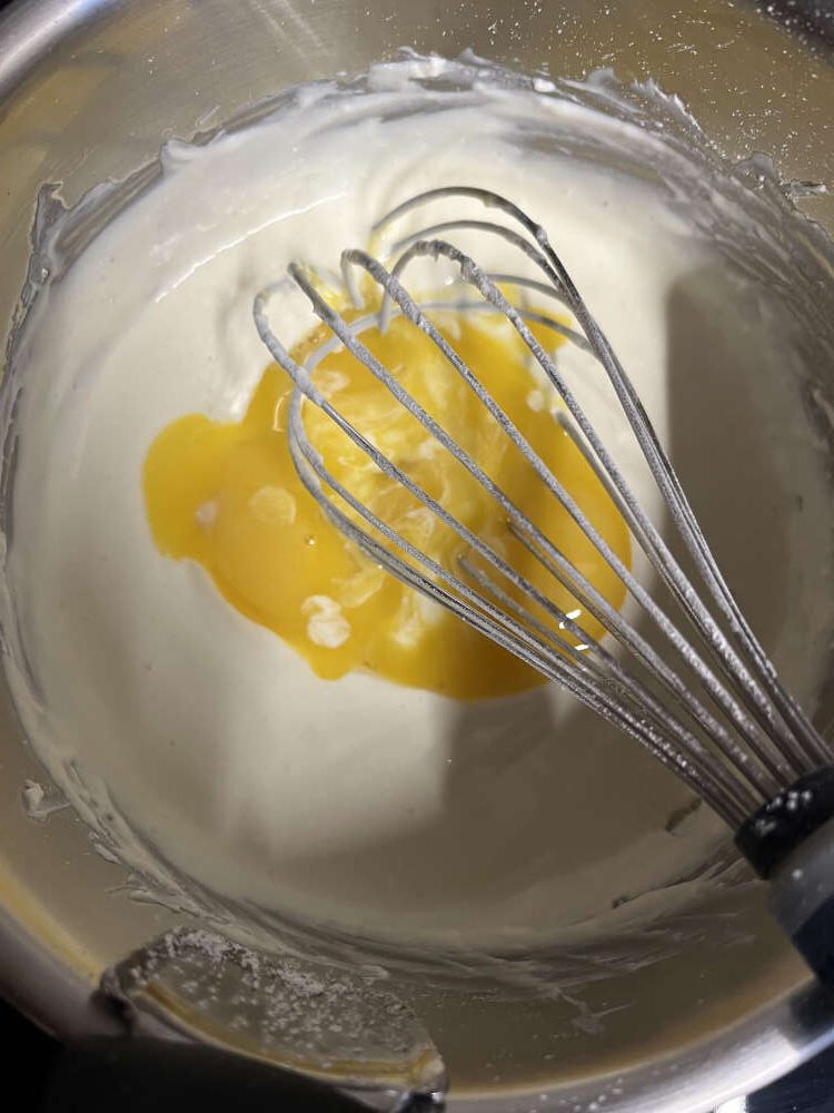 - Das Eigelb unterrühren.