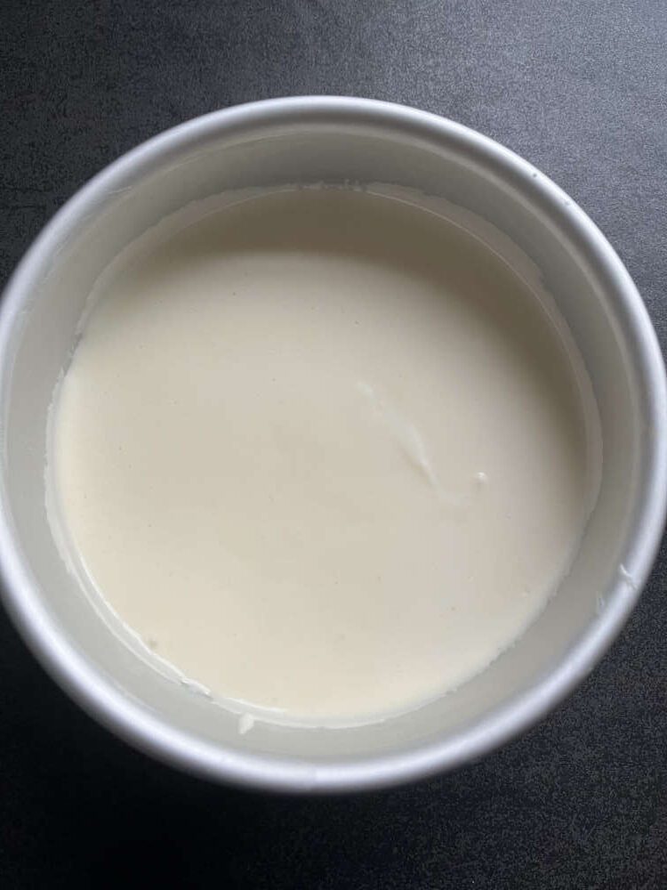 - Den Philadelphia Frischkäse, die Butter und die Milch in einem Topf lauwarm erwärmen und homogen verrühren. Die Temperatur sollte 40 °C nicht überschreiten.